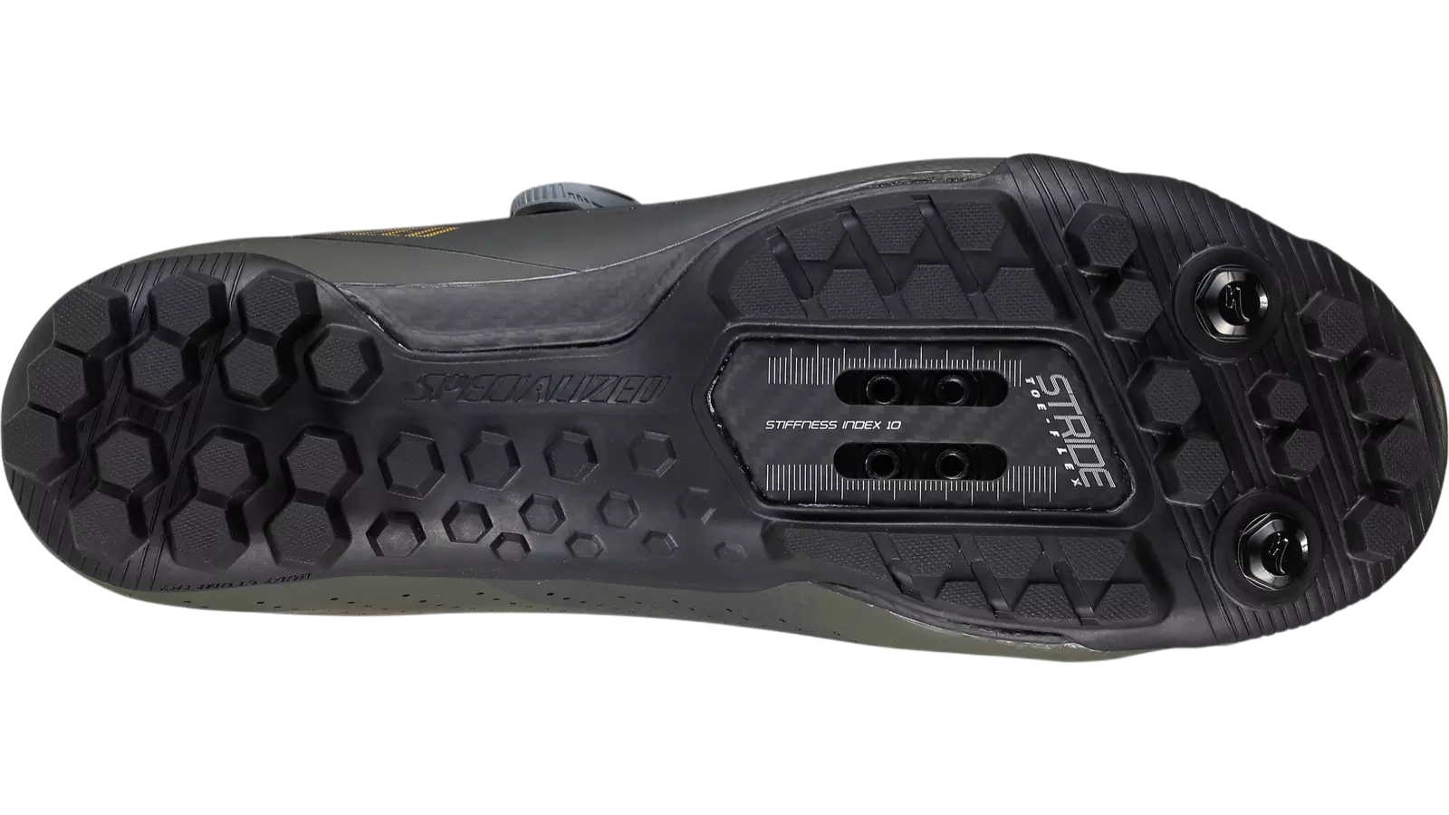 - Carbon STRIDE toe-flex technology allows for natural toe movement off-bike but remains stiff for pedaling: Stiffness Index 10.0)